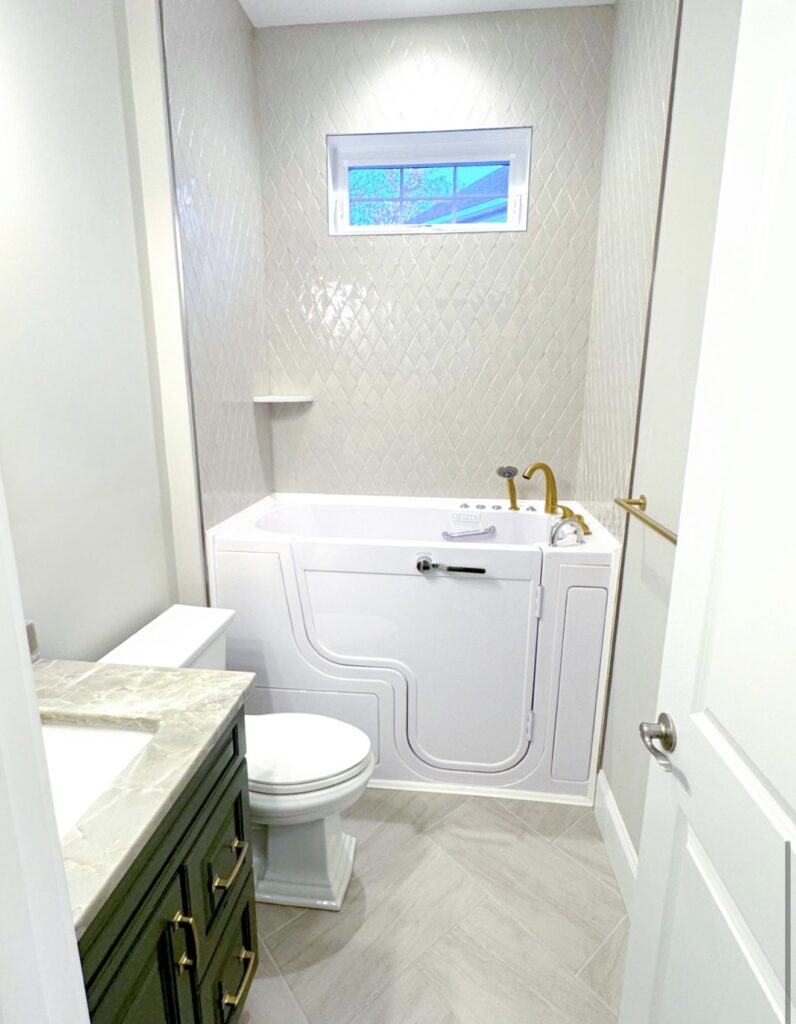 Walk-in tubs are one of the most popular senior-safe bathroom solutions because they combine accessibility, comfort, and therapeutic benefits.
